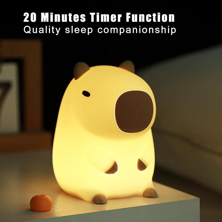 Creeaza o atmosfera magica si relaxanta in camera copilului cu Lampa de Noapte Capybara, un accesoriu care aduce zambete si liniste in fiecare seara.